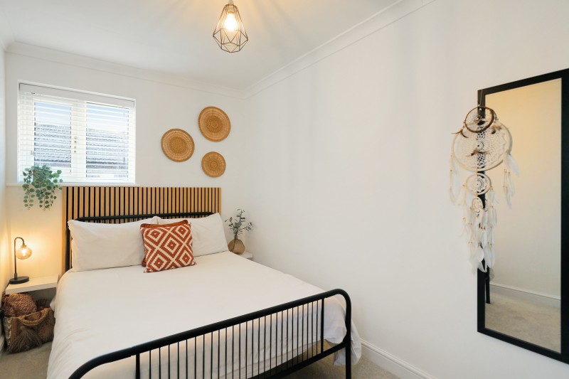 Upstairs has a warm, cosy feeling; fully carpeted, there are two spacious bedrooms, with the master bedroom having ample stoarge options, including double fronted built in wardobes and a separate large chest of drawers. The second bedroom comes with a double bed and wardrobe rack.