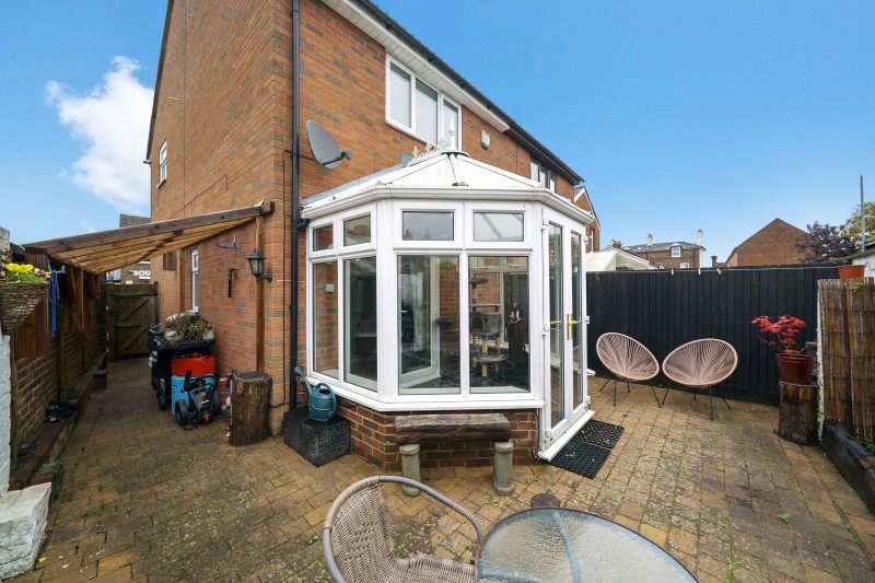 Leading on from the lounge into the conservatory, there's direct access to a large private wrap around patio garden area with lean to.