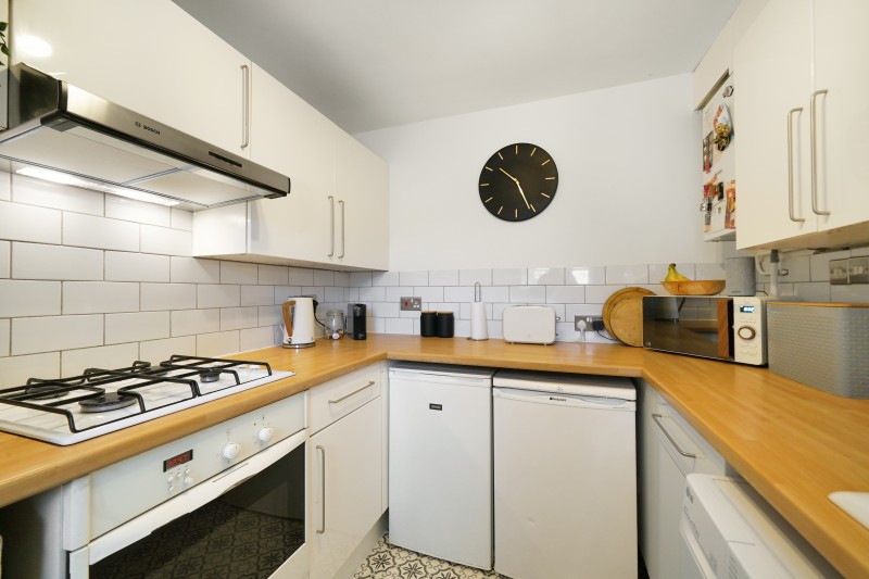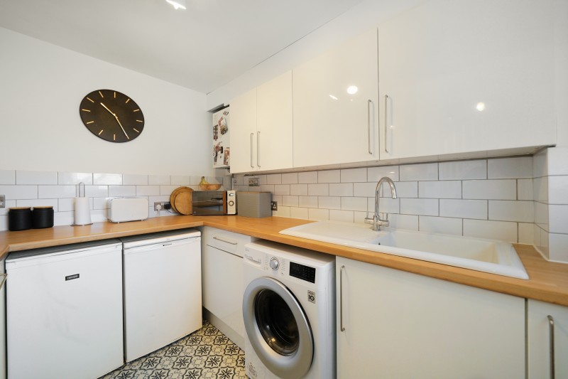 The kitchen is well equipped, with plenty of storage space, under counter fridge and freezer oak worktops, belfast sink, and white metro tiles throughout.